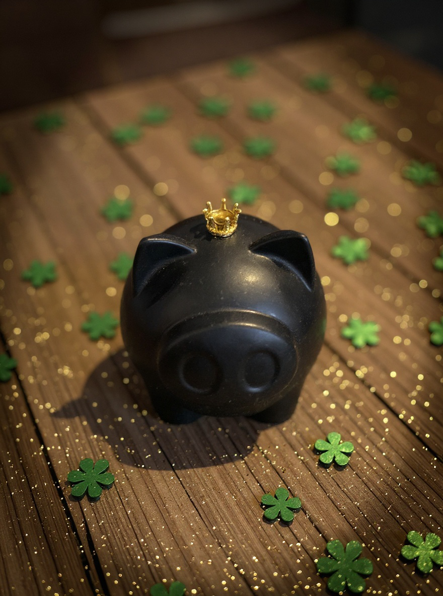 Der Glücksbringer in Schweinform steht für Wohlstand, Zufriedenheit und Lebensfreude, während die Krone Stärke und Selbstbestimmung symbolisiert. Gemeinsam bilden sie ein machtvolles Duo, das positive Energie und Mut schenkt.